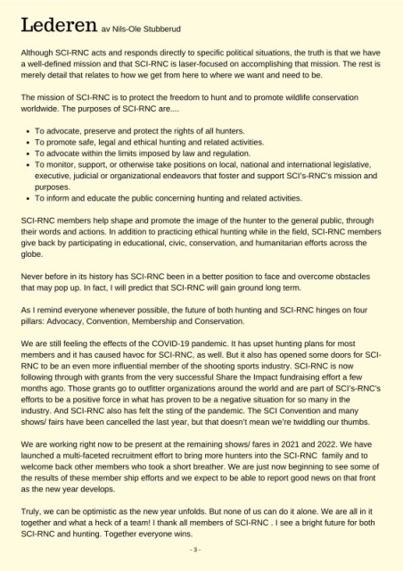 Page 3 - NORDIC SAFARI CLUB CHAPTER NEWSLETTER 1st QUARTER 2021