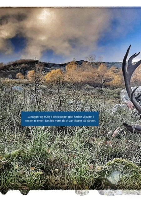 13 tagger og 90kg I det skuddet gikk hadde vi jaktet i nesten ni timer. Det ble mørk da vi var tilbake på gården.