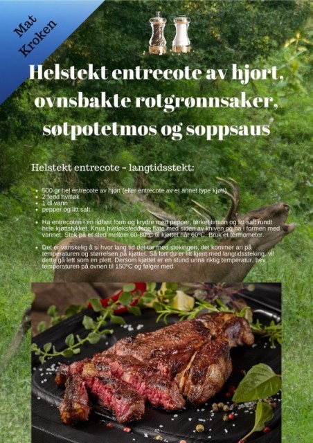 Helstekt entrecote av hjort,